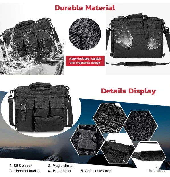 Il est fait de nylon résistant à l’eau, de boucles mises à jour et de fermetures à glissière SBS pour assurer une performance durable. Conçu avec des coutures renforcées solides pour assurer une grande résistance et de la durabilité.