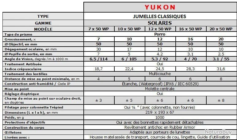 La série de jumelles SOLARIS de YUKON comprend aussi les jumelles: 7x50 WP – 10×50 WP – 16×50 WP – 20×50 WP