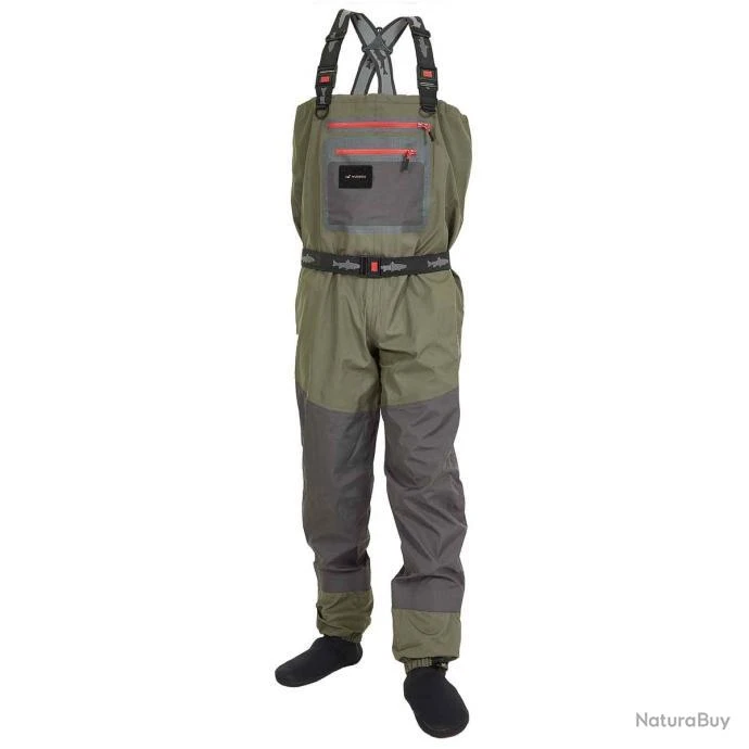 Les deux poches ventrales sont Ă©quipĂ©es de zips YKK. Ces waders souples et confortables disposent de chaussons en nĂ©oprĂšne bi densitĂ©, d’une ceinture de wading et de bretelles Ă©lastiques rĂ©glables.